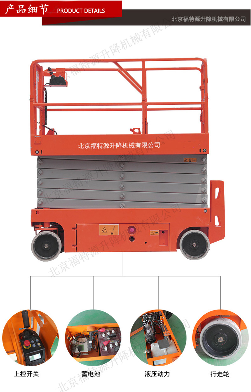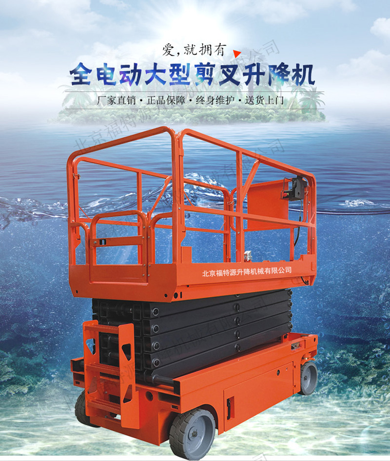 全電動行走式升降機,具有移動靈活、升降平穩、操作方便、載重量大等特點。升降動力分為220V或380V電源,采用國外和國產液壓泵站。主要適用于工廠、物業單位、商店裝潢、建筑、裝飾、場館館布置、會議中心等行業。此款升降機考慮到移動方便性、較高的穩定性,寬大的作業平臺和較高的承載能力,使高空作業范圍更大更廣、可以多人同時作業。提高了工作效率保障了人身安全,的確是高空作業得力助手。