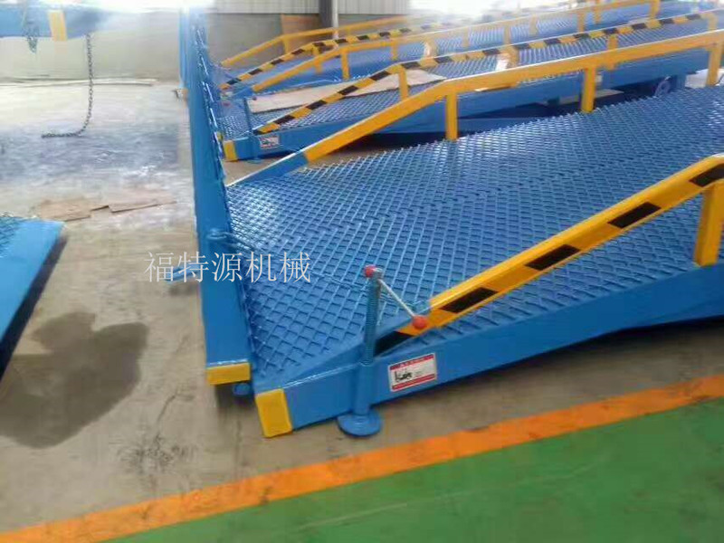登車橋分為固定式、移動式兩種,采用國產(chǎn)/進口液壓系統(tǒng)。它的主要作用是在貨臺與運輸車輛之間搭起一座橋,使叉車便利地行駛,達到高效裝卸貨目的。該設備一端與貨臺等高,另一端搭在車廂后沿,并能根據(jù)不同的車型及裝車過程中車廂的高低變化,自動調(diào)整高度。該產(chǎn)品可根據(jù)用戶的不同需要,在外形尺寸、承受載荷等方面特殊設計。