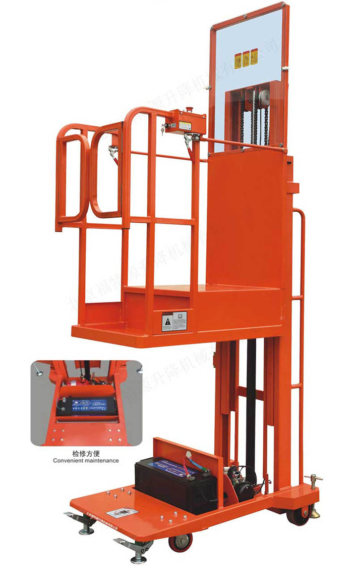 適用范圍:適于單人操作,主要用于倉庫、車間、電梯口、超市、地鐵站等狹窄空間的物品取放。