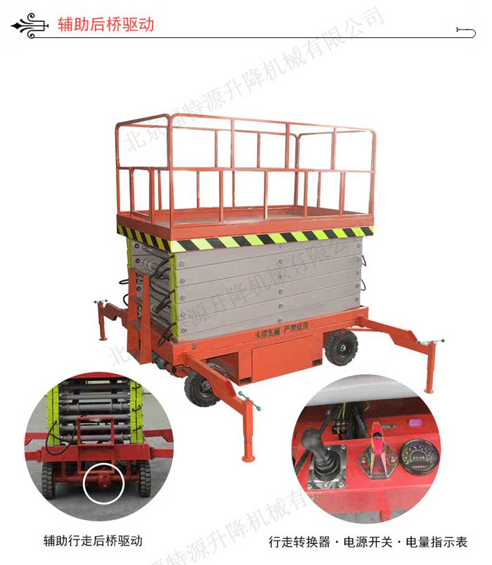 移動式升降機有人工移動式升降機、電動移動式升降機,另備有手壓泵,供停電時使用,具有移動靈活、升降平穩、操作方便、載重量大等特點。升降動力分為220V或380V電源,采用國外和國產液壓泵站。主要適用于工廠、物業單位、商店裝潢、建筑、裝飾、場館館布置、會議中心等行業。移動式升降機考慮到移動方便性更考慮到較高的穩定性,寬大的作業平臺和較高的承載能力,使高空作業范圍更大更廣、可以多人同時作業。提高了工作效率保障了人身安全,的確是高空作業助手。